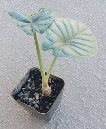 Alocasia Silver Dragon House Plant 2-1/4" X 2-1/4" X 3" tall pot $10 Price is Firm Ad will be removed when sold, so it's available Public place meetup, by appointment, for pickup.