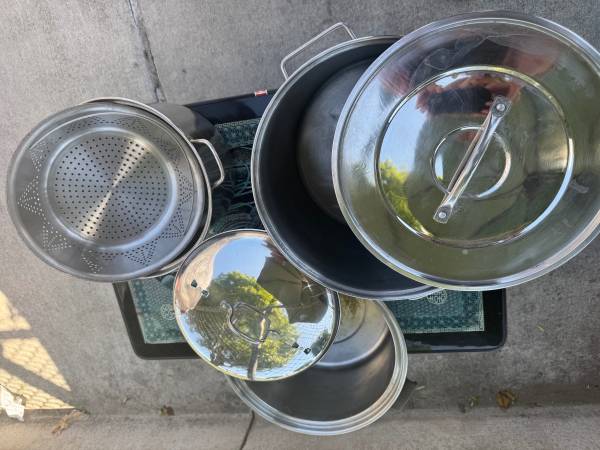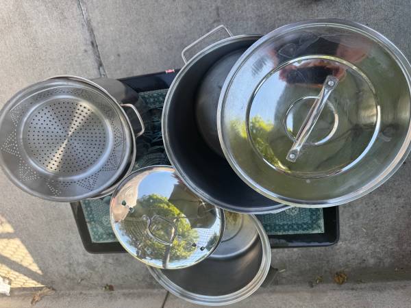 Versatile Cookware: 3 pots, Strainer and 2 Lids