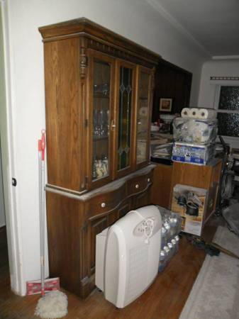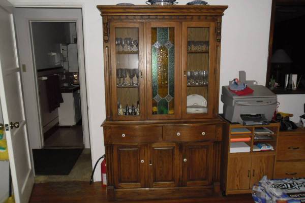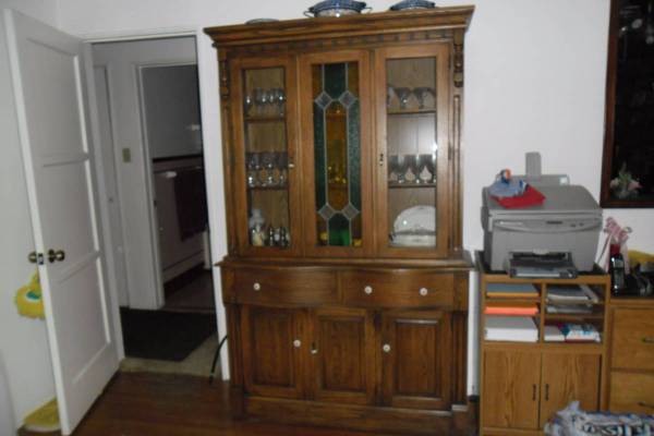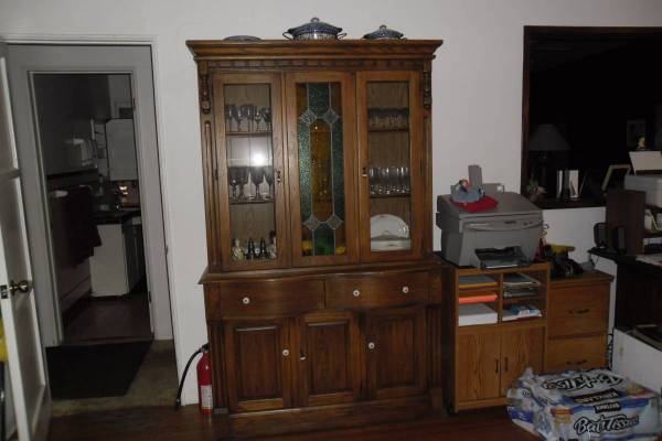 Hutch, Vintage made back in the 60,s .Made of solid hardwood, cut stain glass , Round drawers very expensive to make. High end furniture , High quality. Immaculate New condition.. . Lighted interior. Very nice looking. Display your best china, family photos. Its 2 pieces easy to move.Very nice looking furniture made of quality. $725 .call show contact info