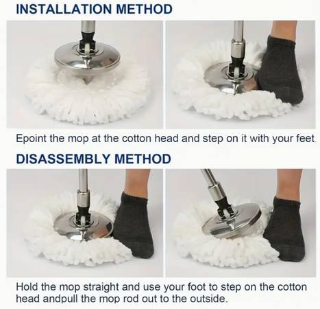 Many buyers are asking for a second replacement mop head, the original mop head is 11.5" in Diameter. Buyer can get a 2nd purple replacement 13" mop heads with heavier microfiber for $3.5