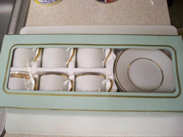 Selling 3 espresso coffee sets for $8 - $12 each set. Each set includes 6 cups and 6 saucers. All are in excellent unused condition in original boxes. Pic #1...$12 Pic #2...$10 Pic #3...$8 Please...