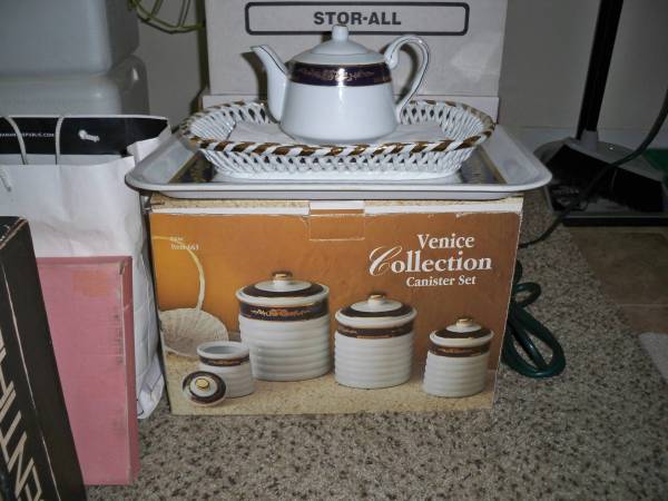 Selling several items from the Venice Collection for $25. Includes canister set, large tray, oblong serving dish, and tea pot. All are in gently used condition. Please email / text / call if...