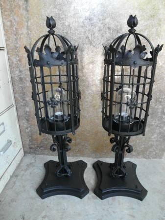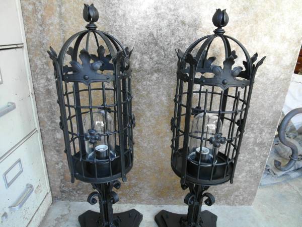HUGE PAIR 1920S STYLE WROUGHT IRON SPANISH REVIVAL EXTERIOR POST LAMP LANTERN SPANISH REVIVAL OUTDOOR EXTERIOR LAMPS. PERFECT FOR YOUR SANTA BARBARA / PASADENA / FLORIDA / AND/OR TEXAS HOME! -REFER...