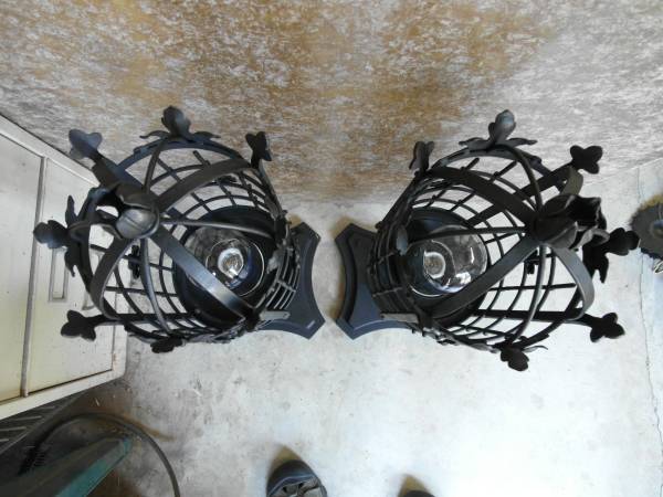 HUGE PAIR 1920S STYLE WROUGHT IRON SPANISH REVIVAL EXTERIOR POST...