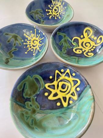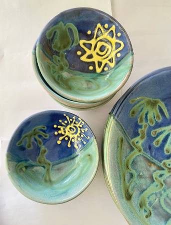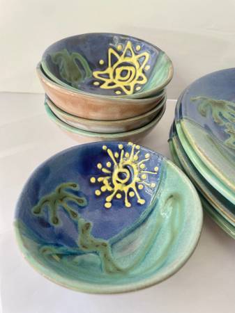 ** Earthworks Barbados Handmade Dishes ** $29 __________________________________________ __ Beautiful one of a kind dishes made in Barbados. __ Each one is unique. __ 4 dinner dishes and 4 small...