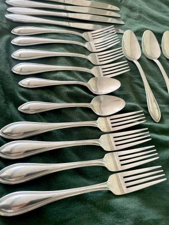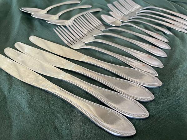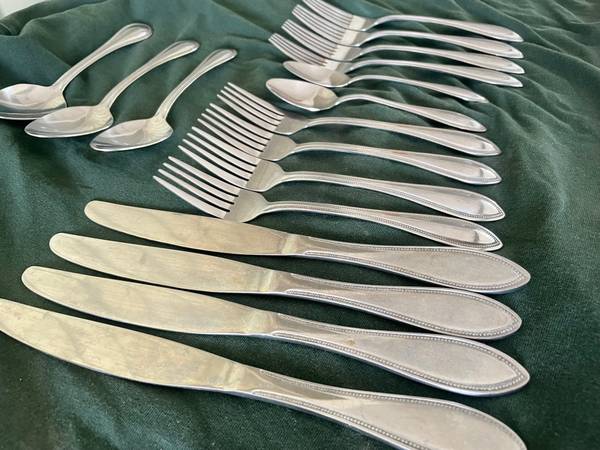 **17 Pcs Pfaltzgraff Beaded 18/0 Stainless Steel Flatware ** $39 _______________________________________________________ __ Excellent used condition __ American Bead design