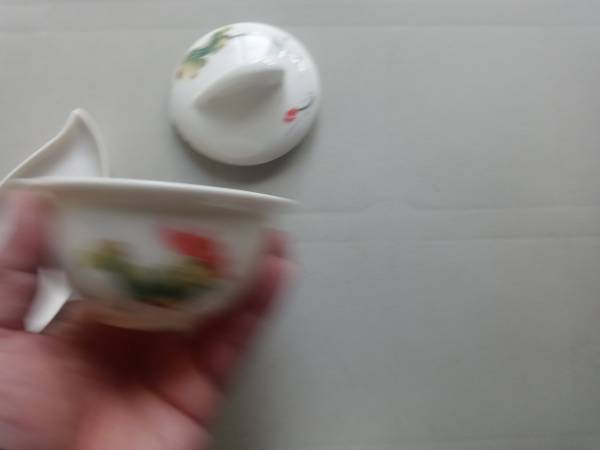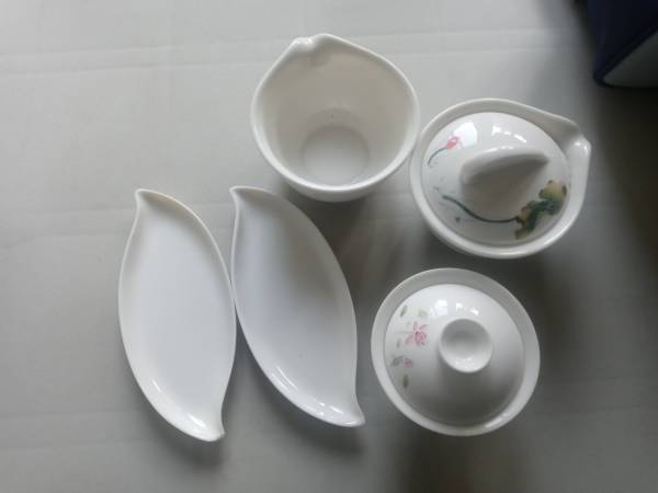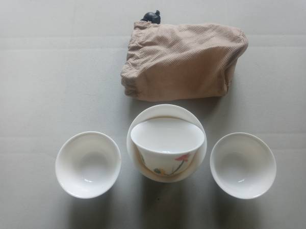 This 14-piece fine porcelain flowery tea set consists of one tea pot with lid and leaf-filter, one milk jar with lid, two sugar trays, one tea bowl, and three tea cups all fitting into a semi-soft travel bag. Please see the photos for details and dimension.