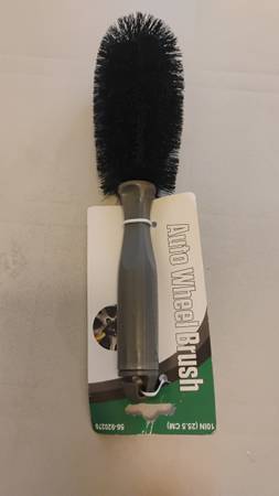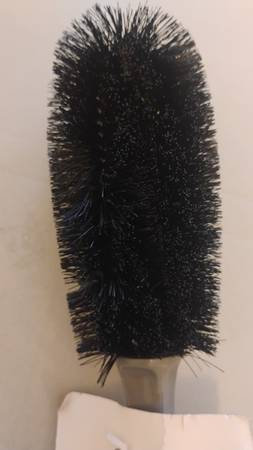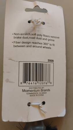 This wheel brush is made of non-scratch soft polymer fibers and is good for removing braker dust, road dust, and grime. Please see the photos.