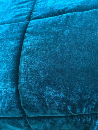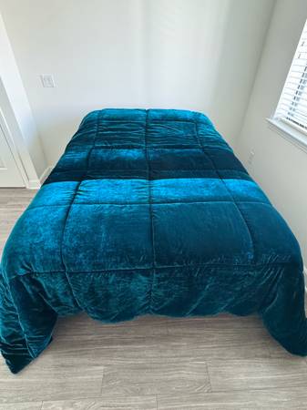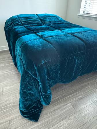 Beautiful king size velvet comforter with matching king size pillow cases. Brand new and never used. Bought for my queen size bed to be extra long but it’s much larger than what I wanted. Pictures show displayed on queen size bed.