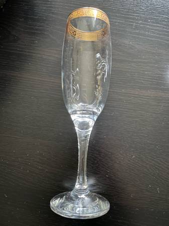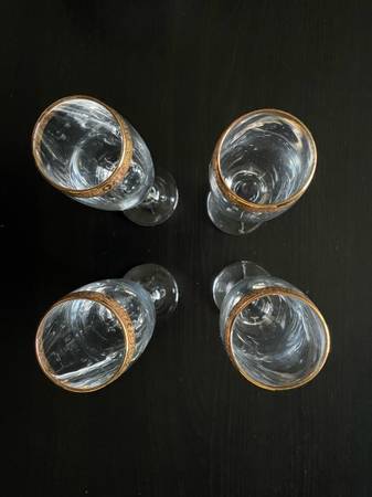 Set of 4 Imperial Gold Decorated Champagne Stemware Glasses (8’’ height). The glasses have been sitting in a box at home. The set is really beautiful but I’m moving away and decided to sell it. Cash...