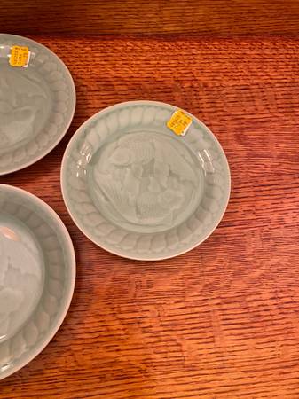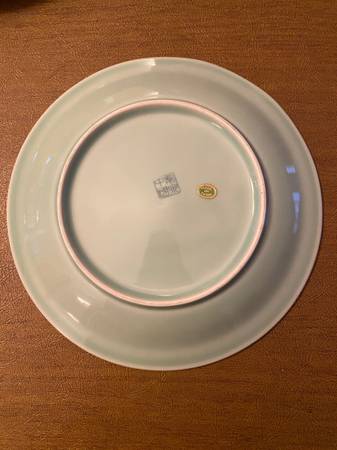 All plates are new, unused. Please note some plates have natural flaws (dark specs). No chips or cracks. One plate has very light scratches .