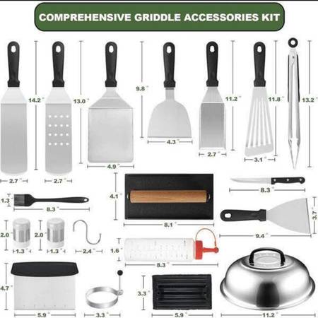 35-Piece Griddle Kit, Enlarged Spatulas, Basting Cover, Scraper, BBQ Flat Top Set