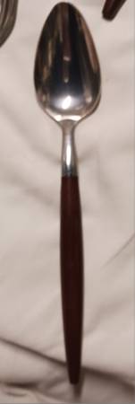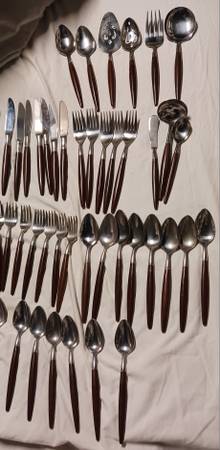 7 teaspoons, 8 Tablespoons, 8 salad or desert forks, 5 dinner forks, 8 kniives and 9 other pieces. Zixy