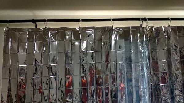 Aluminum Foil Curtain(From Emergency Blanket) for Summer, first use this to block Sun heat to lower the indoor temperature by 6F(3C)