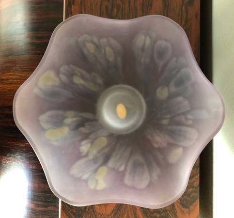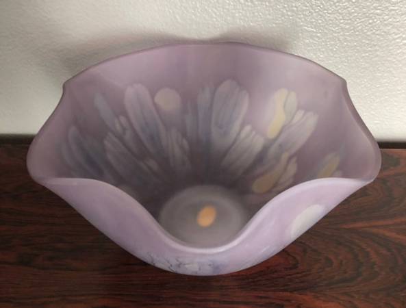 I have two small bowls listed that could hold flowers or candles and could accompany this bowl. Look up listing titled Two Vintage Rueven Hand-Painted Glass Bowls by Nouveau Art Glass Co.