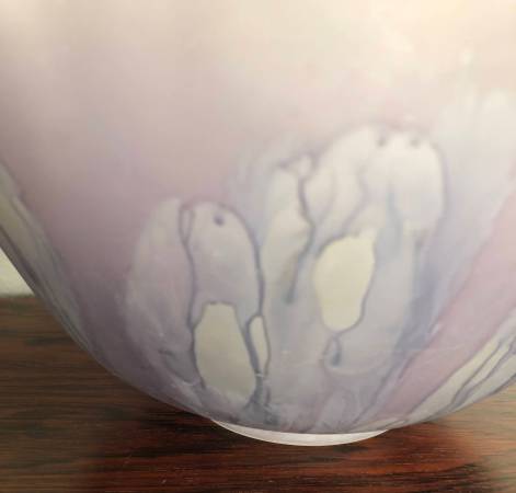 This piece is a large, vintage, wavy edged, hand-painted Rueven glass bowl for salad, fruit, or you could even float candles in it as a centerpiece. It is manufactured by the Nouveau Art Glass Co., Inc. in the USA. It is a very sturdy bowl with the original sticker still attached to the bottom.