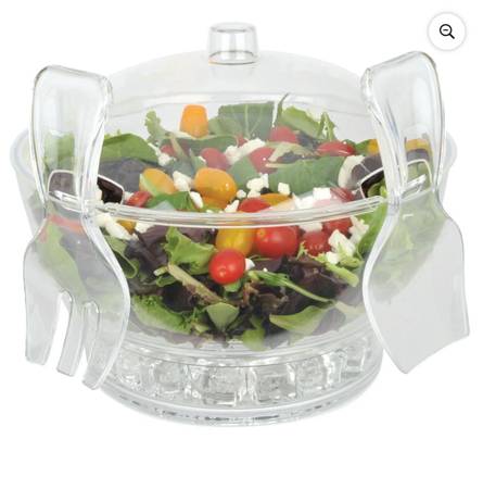 THERMAL ICE BOWL WITH SALAD SERVERS • Removable, reusable freezer pack in base keeps food chilled. • Perfect for indoor or outdoor entertaining. Brand new
