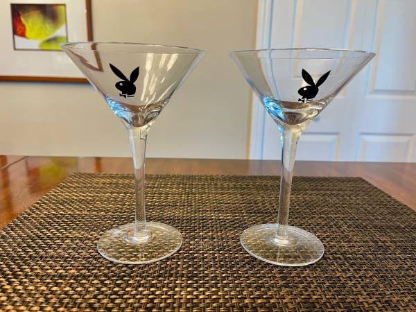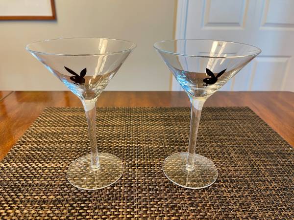 A PAIR of Playboy Martini Cocktail Glasses 2 Glases INCLUDED 7” H x 4.5” W For LOCAL pickup CASH ONLY Thank you
