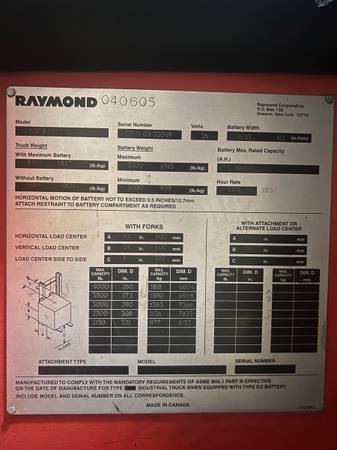 Raymond Reach Truck 321inch/26ft Low hours AC Motor New hydraulic cylinder seal put in last month New wheels Great working conditions can be tested by appointment.