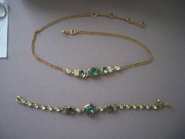 Selling a set of necklace and bracelet for $30 (sticker $68). They are gold-tone with green stones (medium and light shades). Both are in excellent condition (possibly unused) and were purchased...