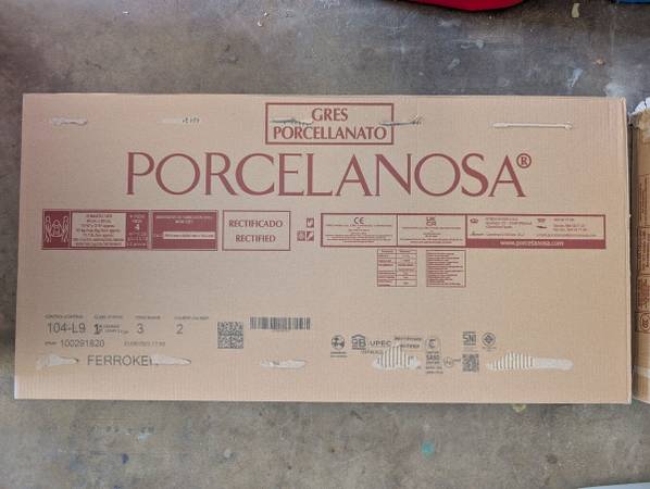 Selling 6 unopened boxes of Porcelanosa Ferroker large-format porcelain tiles. These high-end Spanish tiles feature a matte, industrial iron-look finish with rectified edges—perfect for a modern bathroom, kitchen, or entryway.