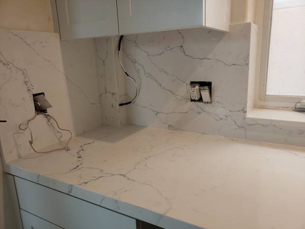 Super Calacatta Attica Quartz features a warm white background with subtle grey pencil veining that replicates the sought-after look of the real Italian marble. Ready to harmonize with nearly any color scheme or design style, this lovely white/golden quartz is neutral but not boring. It's the perfect choice for creating durable quartz Kitchen countertops, backsplashes, waterfall islands, . Get the look of luxurious of one of the most high end marble with this stain-resistant and maintenance-free quartz.