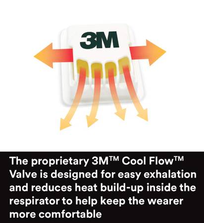 Proprietary 3M™ Cool Flow™ Valve helps keeps wearer cool.