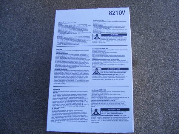 New 3M, Particulate Respirator 8210V, N95, Cool Flow Valve, 10/Box.