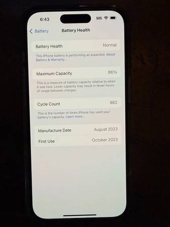Cycle Count: 862 Cycles. (This number reflects heavy daily use and is provided for full transparency. See battery screenshot in photos).