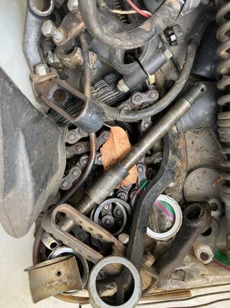 Head light, gauges, shocks, oil tank and more. A bunch of stock parts and hardware.