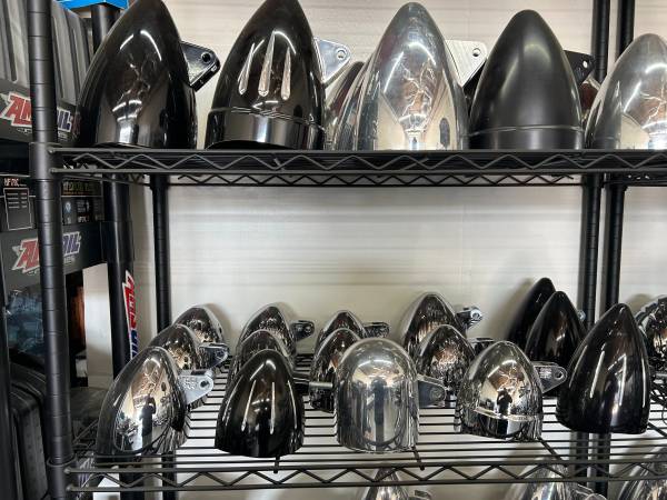 Headwinds motorcycle headlights Sizes: 5 3/4 and 4 1/2 Chrome $200 Polished $150 Black anodized $150 Black Powdercoat $200 Lights without trim rings are $120