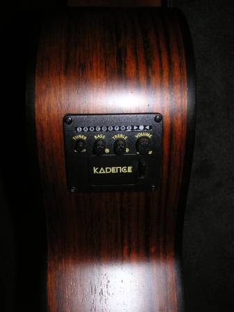 Selling a Kadence Acoustic Electric Cutaway guitar in Mint near New condition. It features an Ash body, Sealed Tuners, figured back and sides, builtin tuner and EQ and upgraded bone saddle.The guitar has a great tone and loud projection and is a lot off guitar at an affordible price. Sorry no case and no trades. Thanks