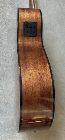 Solid mahogany top with layered mahogany back/sides gives a beautiful warm, rich tone with a pronounced midrange tone