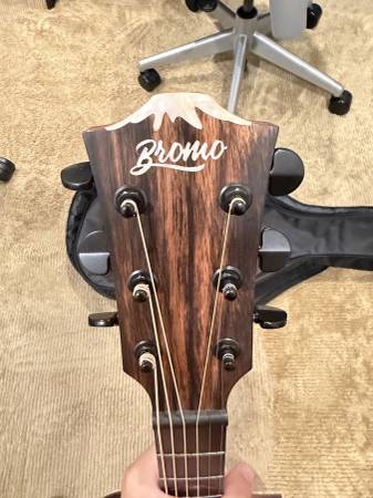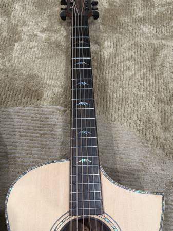Love this guitar and waited for a long time to get it during the pre-orders, but I have too many guitars of this size now and can't justify keeping it! All electronics work and the guitar is in perfect playing condition. Was professionally set up when it first arrived. Comes with the factory Deluxe Gig Bag as shown in photos. Note: I did notice some minor factory QC issues on the headstock inlay as shown in the photos, but only very minor cosmetic flaws and nothing that affects sound or playability - I would have it in "Mint" condition if not for these cosmetic factory flaws. Otherwise, an amazing guitar with a lot of hype surrounding it!