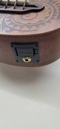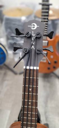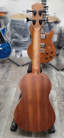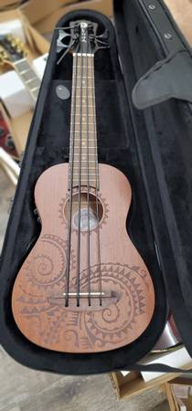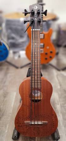 The Bari-Bass Tattoo Mahogany marries deep vibrant tone with the signature Luna aesthetic. Each Bari-Bass ukulele come standard with 20.2" scale length. The Uke Bari-Bass Tattoo Mahogany is made with an all mahogany body, set mahogany neck with walnut fingerboard and sturdy die-cast open gear tuners. Folks will fall in love with Luna's signature laser-etched Tattoo Pacific-inspired design, on and off the stage. Plug in and amplify your performance with Fishman Clasica II active preamp system with built in tuner. Strung with Aquila Thundergut strings make this instrument a joy to play. Branded gigbag included. Join the tribe today!