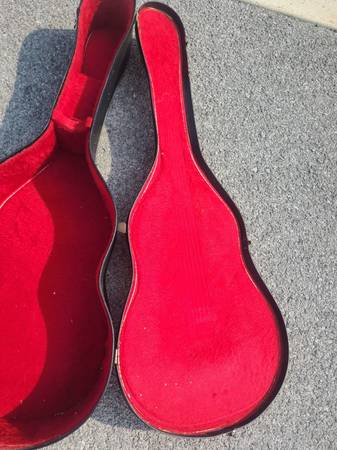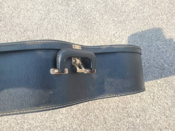 This would have been sold with a 1950s or 60s Gibson acoustic guitar but there is no Gibson logo on it now. Realy nice condition, no rips or damage except for the back looks a bit stained. Inside is all good!
