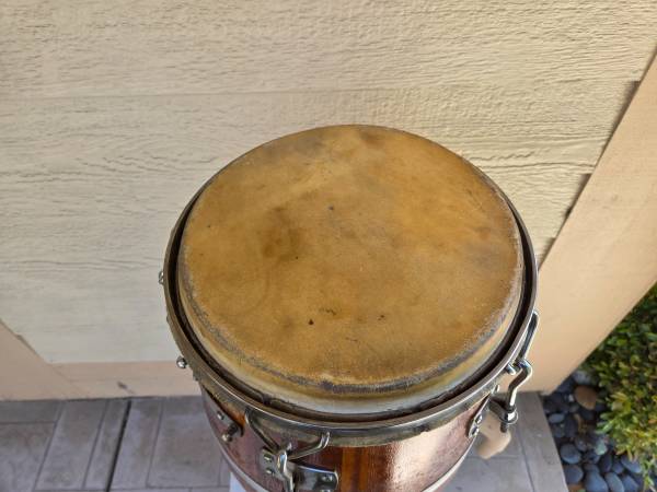 70's Gon Bops mahogany 11.5" conga drum in overall good condition. Plenty of dings and scratches and patina on the chrome. Original head but actually sounds decent. Sold as is.