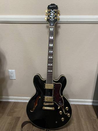 Excellent condition. Minor wear and tear but sounds amazing. Comes with guitar stand and strap. https://www.gibson.com/products/epiphone-sheraton-ii-pro-ebony