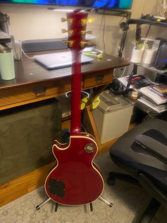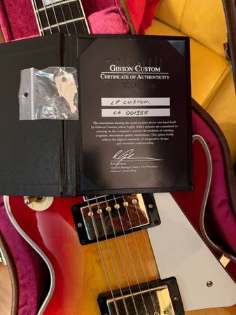 Gibson Leș Paul Custom, 2010 made in Nashville, Les Paul is 15 years old, colour: heritage cherry sunburst, solid body, neck wood 1-piece mahogany, machine heads: Metal tuners, alnico pick ups 490 {R} and 498 alnico {T} Hum bucking pickups, 3 way switch, hardware Gold, it's in good condition has small marks, tunes good, sound good, comes with the guitar case which is in very good condition, comes with paper work. serious inquiries only please!!