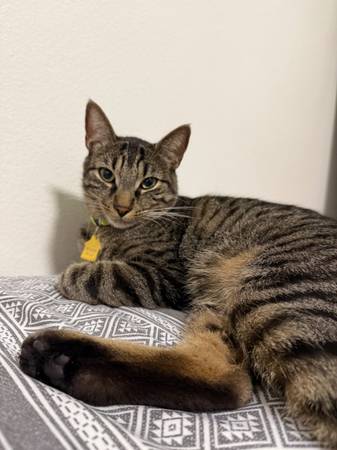 2 year old male tabby. Neutered in need of a new home Let me know if you have questions