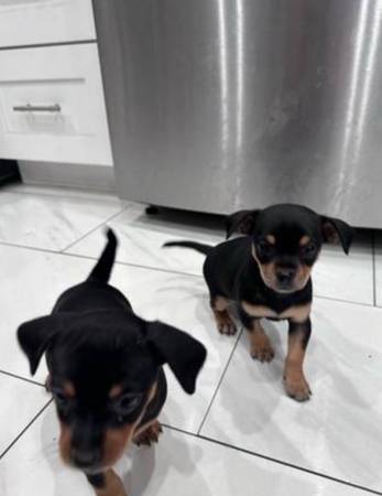 2 boy puppies looking for their forever homes! They’re a Chihuahua × Mini Pinscher mix, born on October 3rd. They’re playful, super sweet, and are eating open farm kibble already. A rehoming fee...