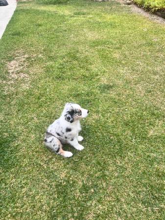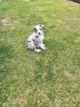This bright blue eyed 10 week old Australian Shepherd comes with 2 rounds of vaccines, deworming, and more already completed. He also comes with a personal in house trainer from Bark Busters. He is also AKC certified ensuring responsible breeding practices. Rehoming fee is $3,500. Please feel free to reach out with any questions or inquiries. Thank you!