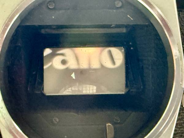 Notes: various bright marks and general wear throughout – small dent on rear left of top plate below film advance – mild delivering of prism, mild dust/debris seen through viewfinder – mild dust, haze, and fungus in lens – light seals and mirror bumper deteriorated – CLA needed.