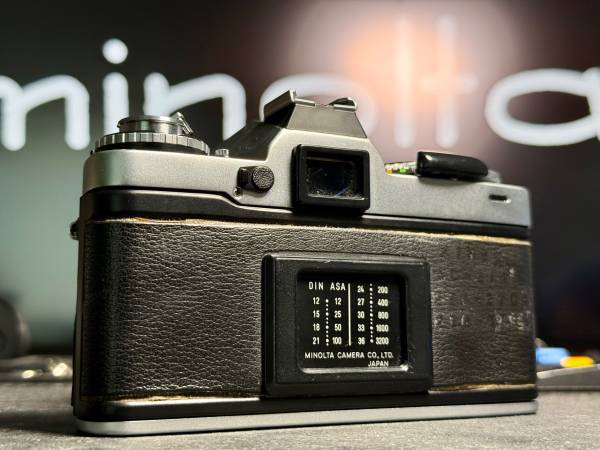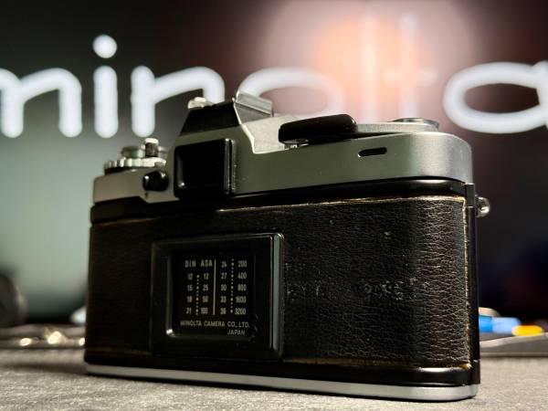 Notes: faint bright marks on base plate – battery holder shows slight signs of corrosion – small tear in leatherette on the front left side – faint markings and slight shrinkage on film door leatherette – light dust seen through viewfinder – slight dust and haze in lens – light seals and mirror bumper deteriorated – CLA needed.