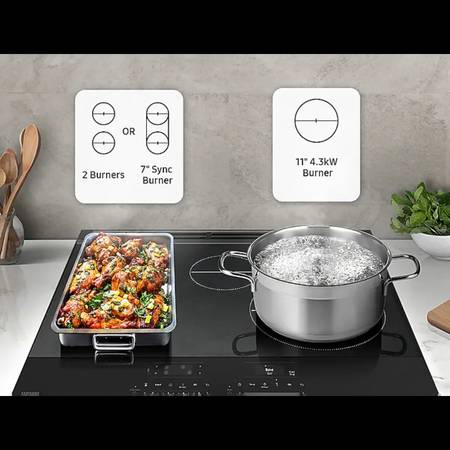 30 Inch Slide-In Induction Smart Range with 4 Elements, 6.3 cu. ft. Flex Duo™ Convection+ Oven, 7" Sync Burner, Storage Drawer, Self & Steam Clean, ADA Compliant, and ENERGY STAR®