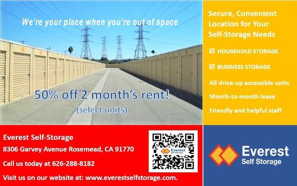 Whether you need short or long-term storage, Everest Self-Storage Rosemead can help.