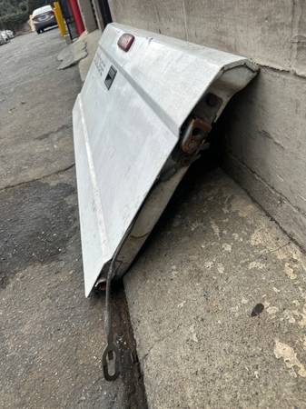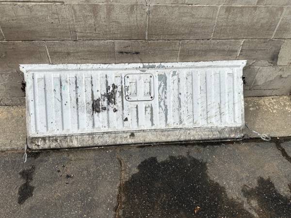 This is a white tailgate originally from a Dodge Dakota pickup truck. It should fit from 87-96. There’s a couple little dings and scratches, but It is not bowed or bent and everything works. It comes with the handle and all inner workings as well as the two side wires that hold it open.