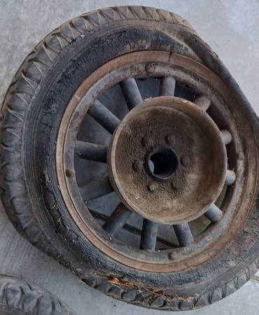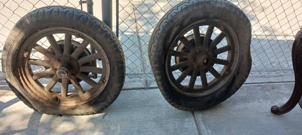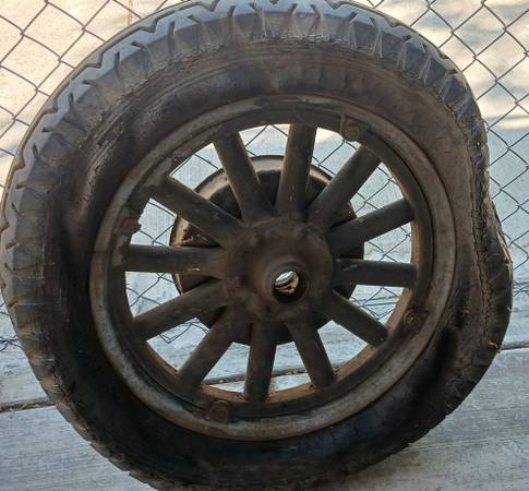 Metal wheel and spokes. 20 inch diameter. Rubber tires still attached. Zixy