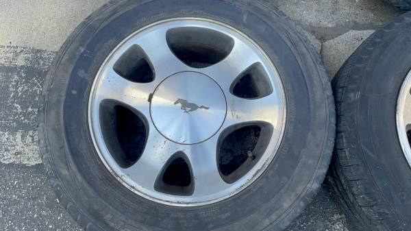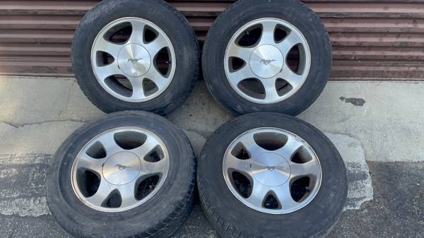 Ford Mustang 15 inch aluminum rims and caps 5 on 4.5 inches- - $200 (montebello)