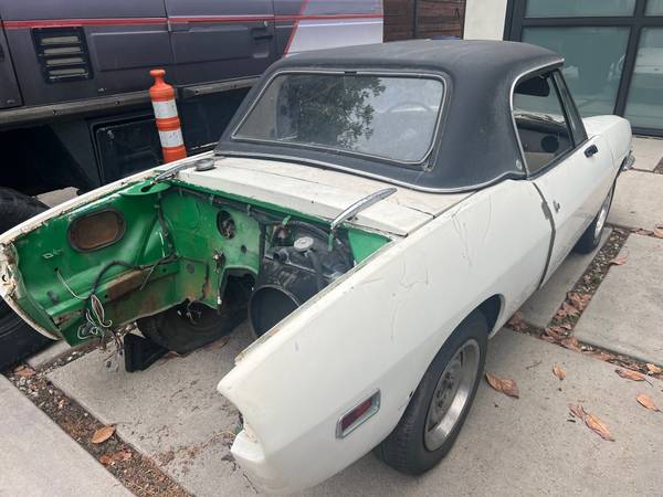 Two Fiat 850 spiders . Complete , with all parts and trim and some extras. One car has a rare removable hardtop , — minus one engine/trans.